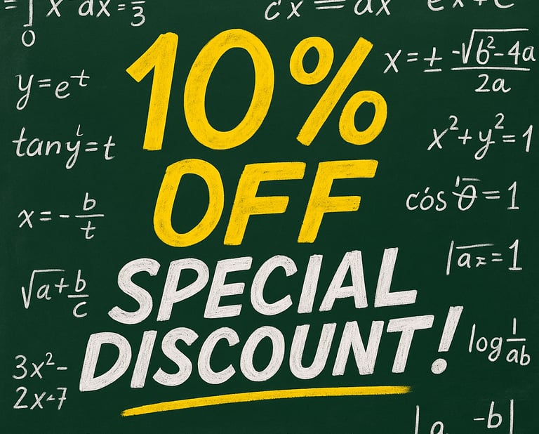 Adquiere tu paquete de 10 horas de asesorías personalizadas en Matemáticas y Física y recibe un 10% de descuento exclusivo.